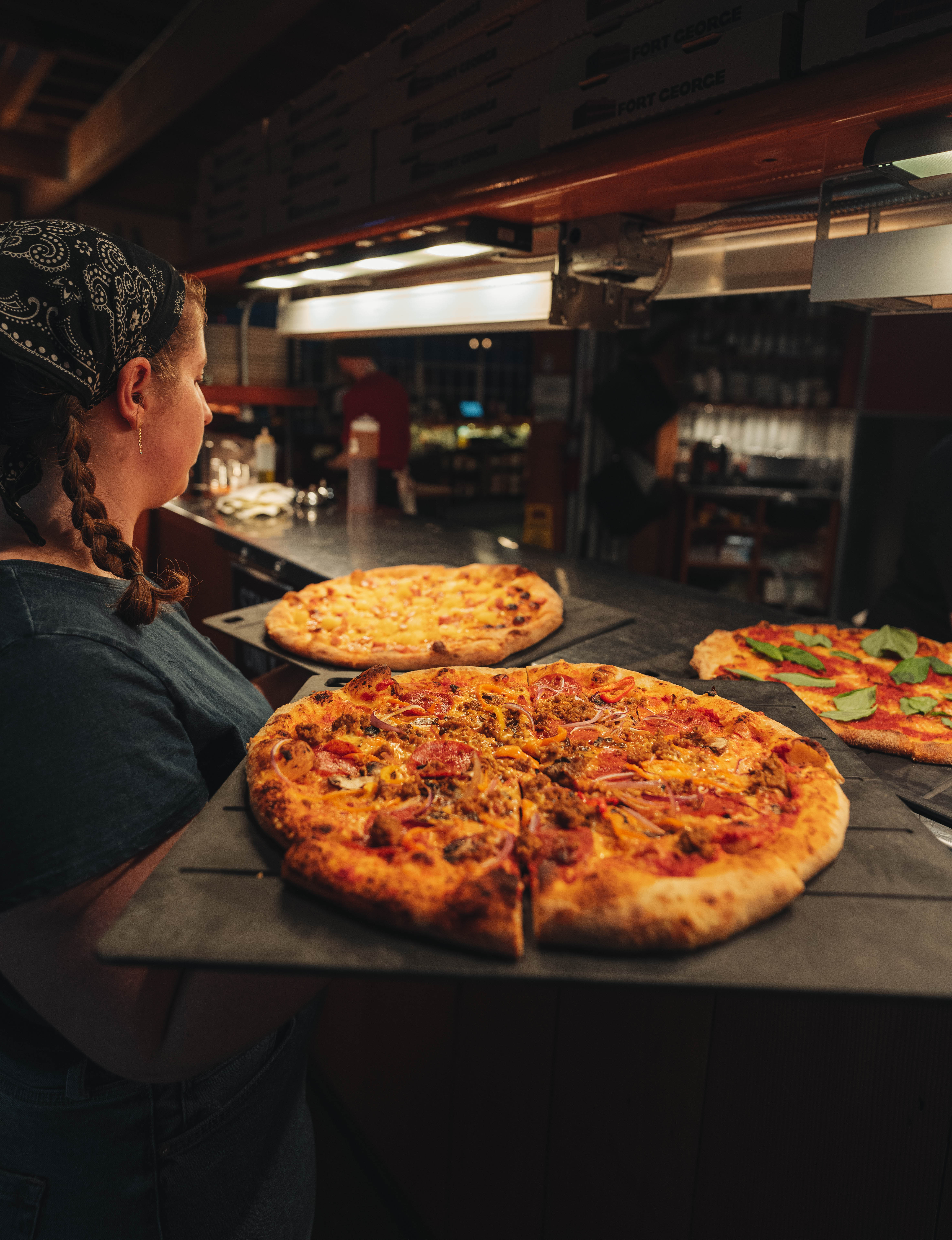Delicious pies fresh from the upstairs kitchen at Fort George Brewing. Everyone loves a slice!